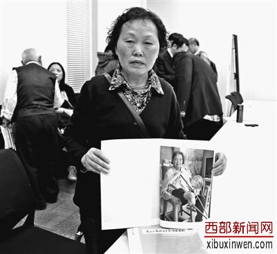 4月17日下午,68岁的罗淑琴展示自己的母亲罗富易因侵华日军大轰炸造成终生残疾的照片。