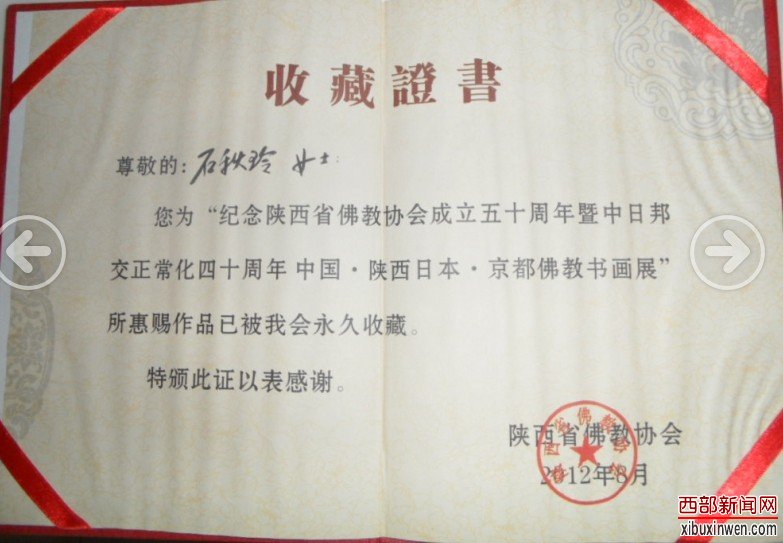 实力派名画家石秋玲个人荣誉证书