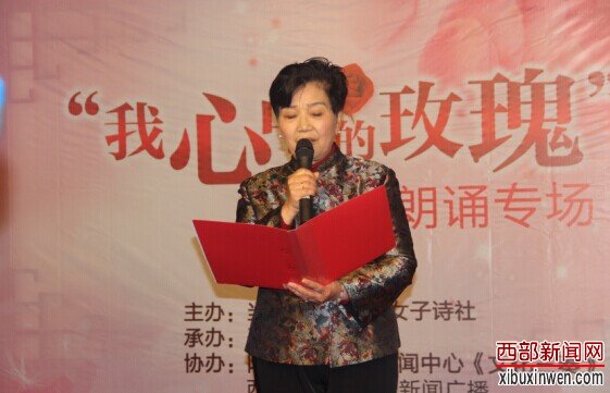 当代女报副总编辑紫藤和陕西女子诗社社长杨莹分别致辞。作为西北地区唯一的一家女性时尚报媒以及陕西唯一的一所女子诗社,能相聚发起这样一场活动,无疑都是因与诗歌的结缘。紫藤说,生命是一趟旅程,每个人都在不知不觉中路过着沿途的风景,当我们在淡看流年中学会轻语岁月,一切都可能翻云覆雨,唯有爱情永恒。每个人心中都有一支永不凋谢的玫瑰,而有爱情的地方就有诗歌,诗歌让女人丰盈,女人让世界美丽,而内心丰盈的女人让世界更加美丽。