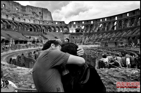 2007年5月7日,罗马市。乌云笼罩在古罗马圆形竞技场上空,一对恋人在相拥相吻。