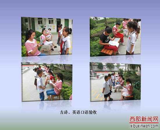 3、开展“双基”验收,夯实学习基础。“万丈高楼平地起”,我校历来重视抓日常教学基础工作。要求学生每周自觉听写语文生字词,练习口算,每天晚上听英语磁带、读背课文,每周听写“四会”单词,教师、家长配合检查。每学期末全校学生进行“口算验收”、“生字及书写考核”、“词语验收”、“英语口语验收”和“古诗词背诵检查”。学校将人教版教材要求和新课标要求结合,制定了较高标准的达标要求(如口算每分钟做对10道题以上方为合格)。由教导处全盘组织实施,拟定试卷,教师交叉监考、交叉改卷,教导处收回试卷复查统计;从达标率、优秀率、全对率三个方面比较考评。将每班学生的验收统计结果全校公布,成绩突出者给予奖励。此项工作受到教师高度重视,验收成绩逐年提高。口算验收合格率达99%,优秀率95%;生字验收合格率100%,优秀率96%;英语口语验收合格率也在90%以上。