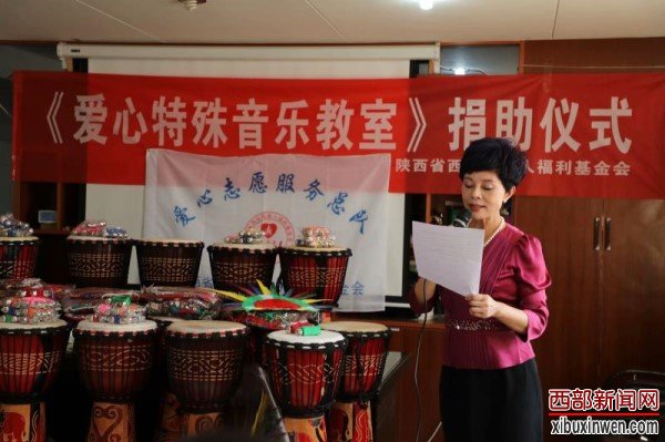 丝路星光▪爱心特殊音乐教室的创始人、项目负责人文锦玲主持了本次的捐赠仪式,并介绍了该项目创立的初衷。文锦玲希望帮助丝路上尤其是西部地区100家自闭症家园建立非洲鼓训练   教室,通过非洲鼓的音乐疗法帮助自闭症及脑瘫儿童做康复治疗。