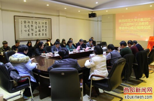 西部新闻网讯 (视点陕西记者 王许良 岳煜昭)12月16日,人力资源和社会保障部对外汉语教师资格培训(PAT)在陕西师范大学出版总社成立培训(考试)中心。中华职业教育社培训中心主任王平、北京京师环宇国际教育集团总裁朱雪峰、副总裁梁凯杰、中国专家学者协会国际教育交流培训中心主任赵婉茹、天津市唐师教育市场运营总监许梦扬、陕西师范大学出版总社有限公司董事长兼社长刘东风、党总支书记、监事会主席魏立安、副总编辑康维铎、出版总社学校文化研发中心主任刘正文、陕西师范大学学生就业中心王党老师等参加揭牌仪式。仪式由康维铎副总编辑主持。