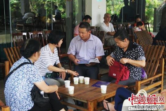 图为5月11日,几名老人在咨询“共享度假”产品。 翟李强 摄