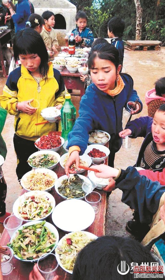 这一天,弄团小学的老师给孩子们也放了假,决意让大家好好地吃上一顿大餐。大家把这场婚礼办成了晚会。村民和孩子们不停地走上舞台,表演各种节目,让宴席格外的喜庆。