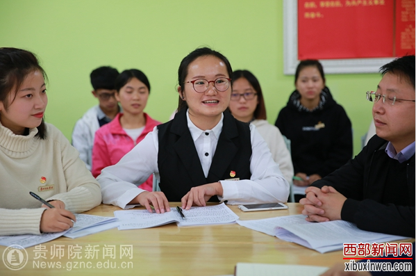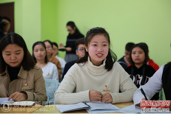 涂妍来到教室时,同学们正围坐在一起,收看习近平总书记参加党的十九大贵州省代表团讨论的视频。涂妍问同学们,大家记得十九大报告里对青年的要求吗?“青年兴则国家兴,青年强则国家强。青年一代有理想、有本领、有担当,国家就有前途,民族就有希望。”同学们齐声说出了报告中的这一段话。