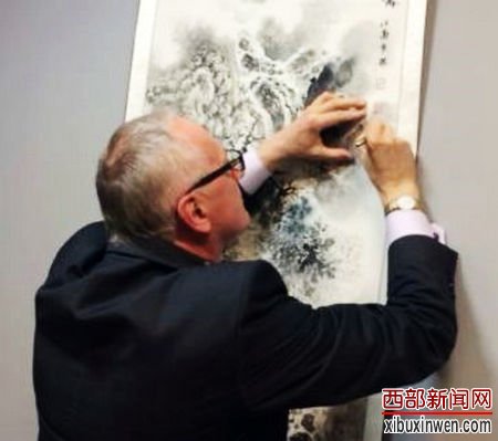 白俄罗斯文化部长在王钲朗(余根)画作上签名