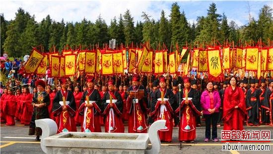 祭祀大典上依次进行击鼓鸣钟、敬献五谷寿桃、净手上香等祭礼。中国作协副主席李敬泽恭读了西王母诞辰祭祀祈福文,祭祀方队朗声诵读。