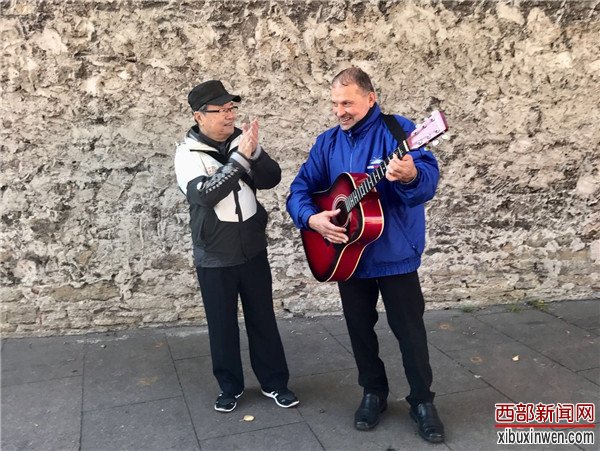 我们在堡垒山顶观景时,一位当地的歌者弹着吉他,在那里轻声地唱着,歌中似有游丝般的忧伤,像是苏联时期在我们这个年纪的人中的流行的那类歌曲。他见到一群中国人出现了,立即改用中文唱中国歌曲。他的中国话咬音很准,唱时吐字清晰,在悠远中显出一种生命的苍桑。最难得是能传达出歌曲的韵味。我们围了过去,歌手用微笑朝大家示意感谢,大家则用掌声鼓励他。老人唱完《大海!我的故乡》又唱《月亮代表我的心》。这首歌太熟悉了,中国游客都跟着唱起来,歌声像鸽群在芬兰湾上空久久的回旋。唱罢之后,他竟然又用口哨将《月亮代表我的心》吹奏了一遍。我们有人也吹起了口哨。歌手来了劲,最后领着大家唱起了中国名曲《茉莉花》。现在这个曲子已经是中国音乐的标志,中国的标志。大家都热情响应,或放声高歌,或口哨伴奏,或鼓掌击节。就这样在堡垒山上办了一场即兴的中国音乐会。