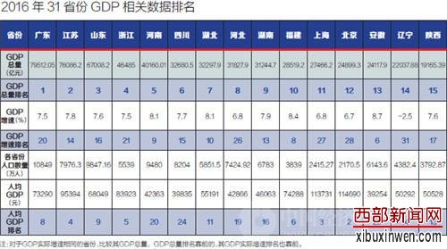 31个省份公布的2016年GDP总量,展示出了不一样的区域格局。