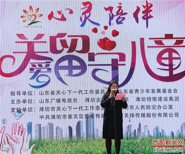 华夏时讯网:春天是充满生机、充满希望的季节。在这样一个万物复苏,梦想起飞的日子,3月31日上午10点,在山东省关工委、山东省青基会、潍坊市关工委等部门指导支持下,由山东广播电视台、潍坊企业家俱乐部、潍坊恒信建设集团共同倡议发起的“心灵陪伴-关爱留守儿童”大型公益活动启动仪式在潍坊风筝广场成功举行。