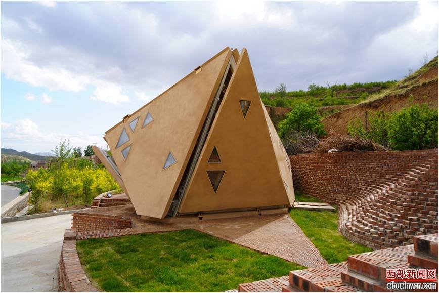 这个建筑的用地位于一个坡台上,它是黄土高坡的延续,建筑形状采用了不规则的16面晶体形态,与山体形状、地段台地地形相契合;同时建筑面板采用GRC材料再现了当地传统民居的夹草夯土墙材质,它溶于黄土山坡的自然环境,同时唤起村民潜意识中的认同感。