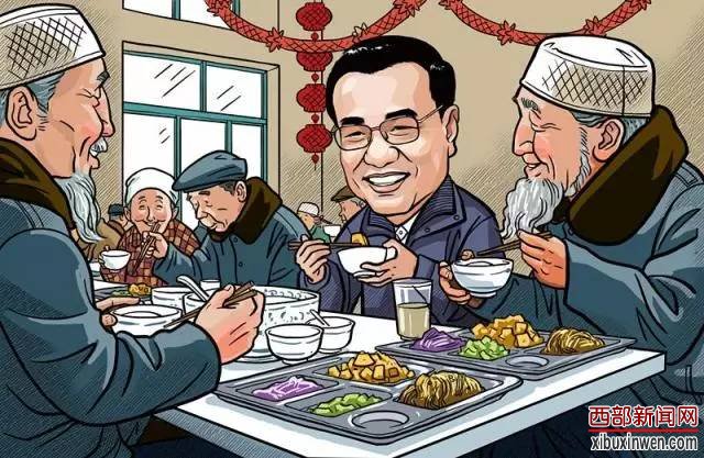 李克强总理2月1日来到宁夏固原市原州区中心敬老院,与老人们在一起过小年。总理与坐在身旁的回族老人马安仓边吃边拉家常,称赞老人“红光满面”,还给他盛了一碗热气腾腾的饺子。随后,李克强起身举起手中的热饮,祝愿各位老人身体健康,幸福长寿。