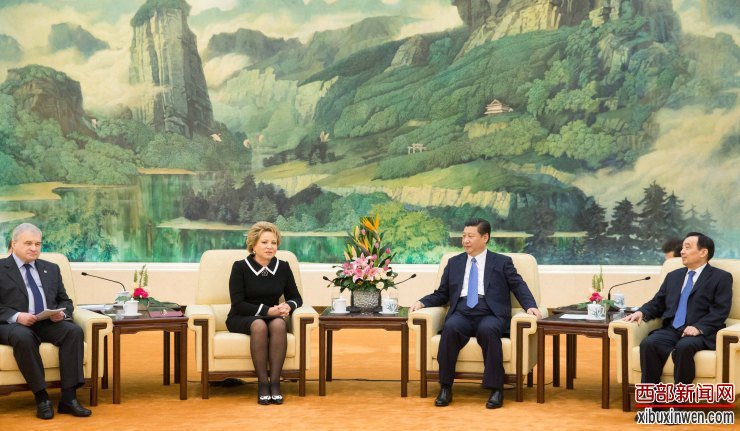 俄罗斯联邦委员会主席瓦伦蒂娜•马特维延科23日与中国国家主席习近平会面。