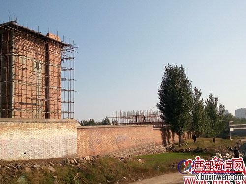在知情群众的带领下,记者来到位于新华路北段与北环路交叉口的一处建筑工地。该工地占地有10多亩,院内一栋四层楼的主体已经完工。在四层楼的后方,另一栋楼的地基已经打好,几名工人正在忙碌着安装钢管架。大门口还建起了一个门卫室。
