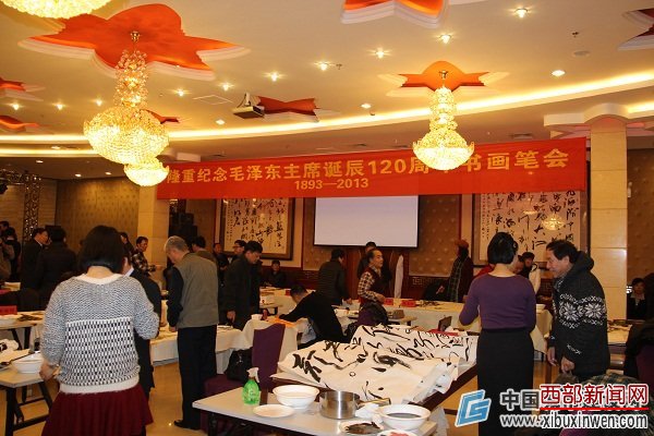 西部新闻网讯( 中国城市建设网 记者王利光 尹延飞)在“毛泽东诞辰120周年”纪念日来临之际,“纪念毛泽东同志诞辰120周年书画笔会”主题纪念活动于2013年12月21日在京举行。曾经担任毛泽东机要秘书的张玉凤女士及书画界与演艺界人士纷纷前来参加纪念活动。活动期间,书法家们泼墨挥毫,将对毛泽东同志的怀念、对国家的热爱以及对新年的祝愿,都融入字里行间。