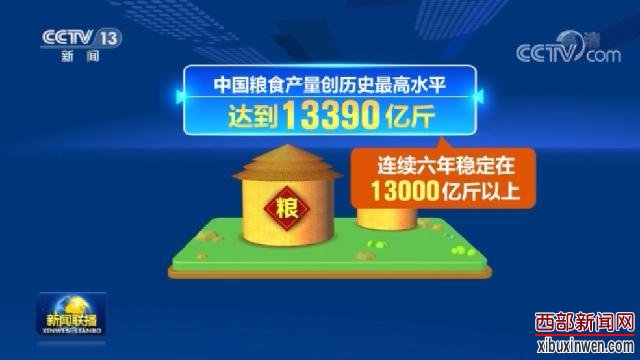 2020年,面对新冠肺炎疫情和不利天气影响,中国粮食产量创历史最高水平,达到13390亿斤,连续六年稳定在13000亿斤以上。