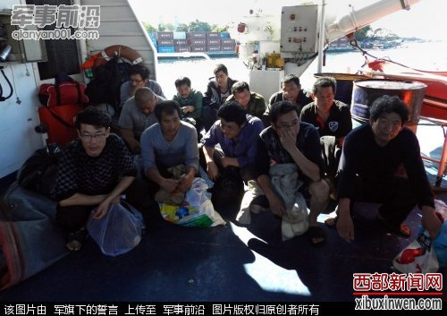 被菲律宾海岸警卫队扣押的在图巴塔哈群礁搁浅的中国渔民。