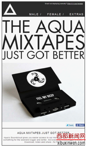 Aqua MIXTAPES的邮件增值内容是每个月会推出一首DJ,允许你通过其网站听DJ音乐。他们传播这些信息并不希望卖给你任何东西,但是,这些电子邮件却为其网站带来了大量的流量。