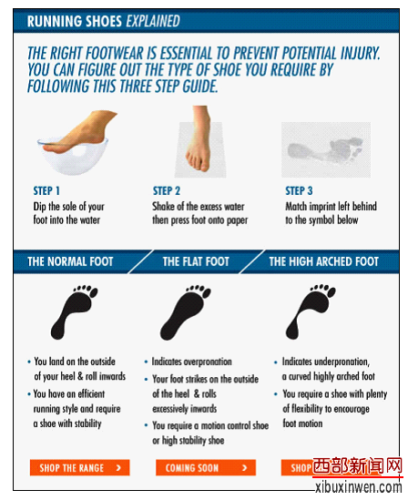 Kitbag.com的邮件向你展示脚有哪些类型(正常/平/高拱形),然后不同的脚型会影响你的跑步方式,而你则需要根据这些信息区找符合你自己脚型的跑鞋,这样才有利于你的脚的健康。