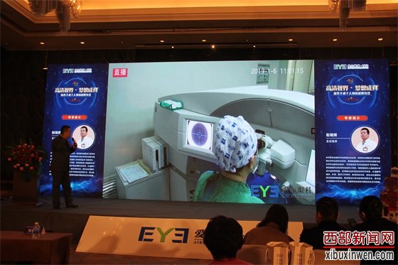 本次活动的另一个重要环节,就是通过现场屏幕向大家直播正在医院手术室进行的全飞秒近视手术。当LED显示屏切换到近视手术室时,整个会场的所有目光几乎都聚焦在了这块高清屏幕上,直播镜头下,西安爱尔古城眼科医院屈光手术科主任郭永红医生正在给一位近视患者行全飞秒手术,随着手术的一步步展开,李康寯博士给会议现场的朋友们进行着详细的讲解。