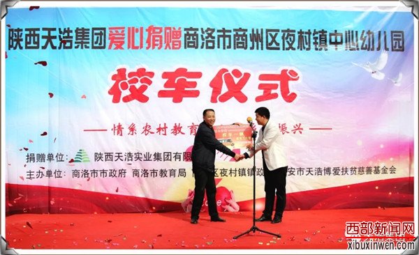 有一种清香来自于赠花之人的真诚,有一份温暖来自于阳光的给予,有一方寄盼来自于心灵的交互。陕西天浩集团秉持天道博爱,浩泽为民的企业文化精神,情系山区教育,助学扶贫;心系山区儿童的快乐健康成长,无私捐赠,于2019年10月16日,在全国扶贫日即将到来之际,董事长王治皓先生带领核心团队赶赴商洛市商州区夜村镇中心幼儿园,进行校车捐赠活动!西部新闻网全程聚焦本次活动。