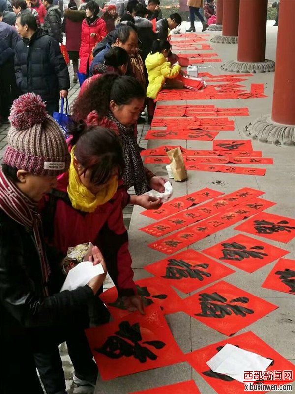 西部新闻网记者了解到,活动现场人山人海,水泄不通,盛况空前。当天前来喝粥的人达到两万人次,送春联人员达5000余幅!陕西省书法协会副主席麻天阔领衔陕西省中青年书法名家李小明丶王永坡丶杨小琪丶赵刚丶韩春涛丶徐苑芝、李建西、谢涛丶杜小民、张方平、雷新颖、张刚、李亚龙丶石亮、韩胜辉、许斌等近二十位书法家挥毫泼墨为大家送上吉语祝福。从早上到中午快两点每个书法家桌前群众都排长队等候春联丶福字,就连事先带去省青书协统一印制好的春联都被一抢而空…