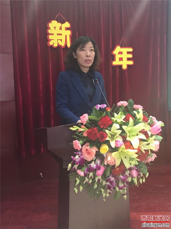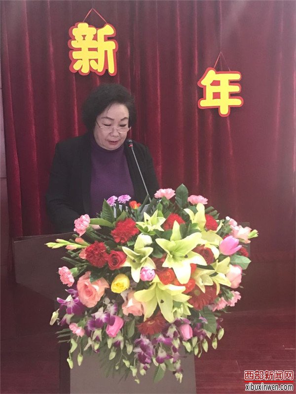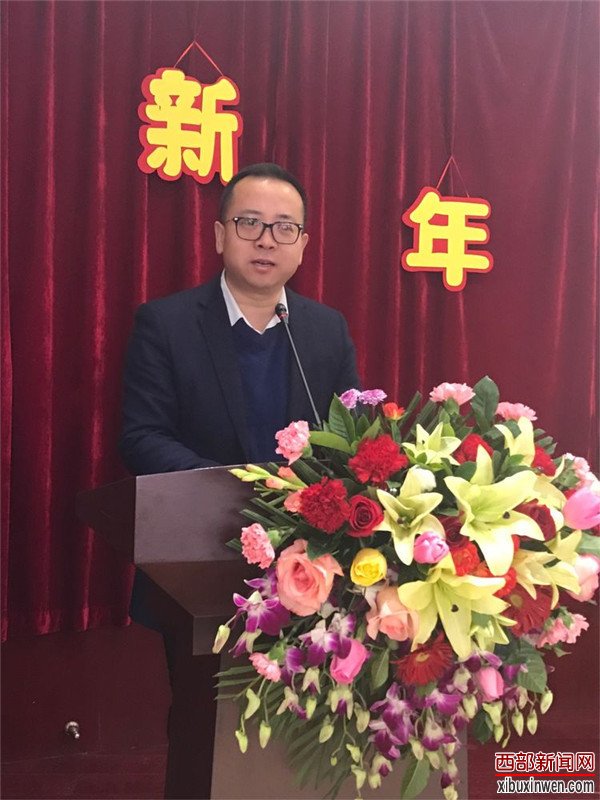 西北大学中国西部发展研究中心理事长桂维民给大家拜早年,祝贺丝路文化大使肖云儒老师主编的《丝路中国段文化样态研究丛书》隆重首发,明确了2018年中心工作的目标任务,祝愿大家在新的一年里做到"六好":好身体、好家庭、好情怀、好智慧、好平台、好诗篇。