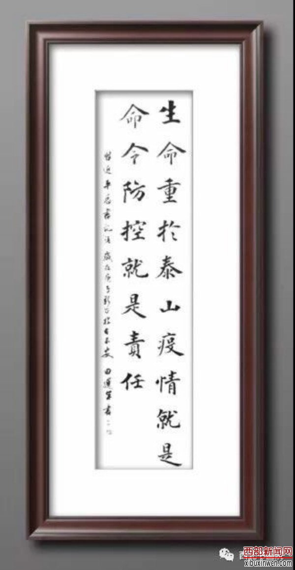 新型冠状病毒感染的肺炎疫情,牵动着全国人民的心,这是一场疫情防控的人民战争,西北文艺工作者积极运用文艺形式,助力新型冠状病毒感染的肺炎疫情防控工作。“万众一心众志成城”防控新型冠状病毒感染的肺炎疫情西北书法名家以形态各异的书法为载体,通过媒体向奋战在一线的白衣天使特别向奋战在疫情防控一线的医护工作者们致敬,希望他们在抗击疫情的同时保护好自己;他们坚信在党中央的坚强领导下,全国人民团结一心,众志成城,一定能打赢这场疫情防控阻击战!(张栢溪)