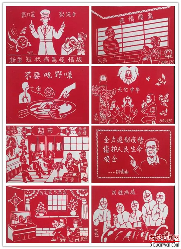 “疫情蔓延严重后,我也想尽一份绵薄之力,想用剪纸形式来记录这次抗击疫情的点滴。”陕西省工艺美术大师、陕西省十大“三秦巧娘”武燕说,她希望能够通过作品来引导人们科学防控,祈福大家平安健康。