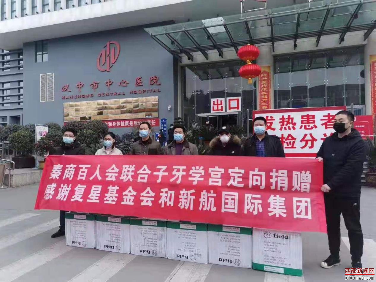 秦商百人会与复星基金会联合采购了2500套医用防护服、2500套防水防护服、500只医用防护口罩、5000只医用N95口罩、4000件隔离衣。截至2月10日,秦商百人会已将50000双手套、100只红外额温仪、5000套防护服、5500只口罩、4000件隔离衣,第一时间送达了西安交通大学第二附属医院、西安市中心医院、安康市中心医院、咸阳市中心医院、宝鸡市中心医院、陕西省结核病防治院、延安大学附属医院、西安唐城医院、西安市儿童福利院、商洛市中心医院、西安市胸科医院、西安市第八医院、汉中市中心医院等省内13家医院。