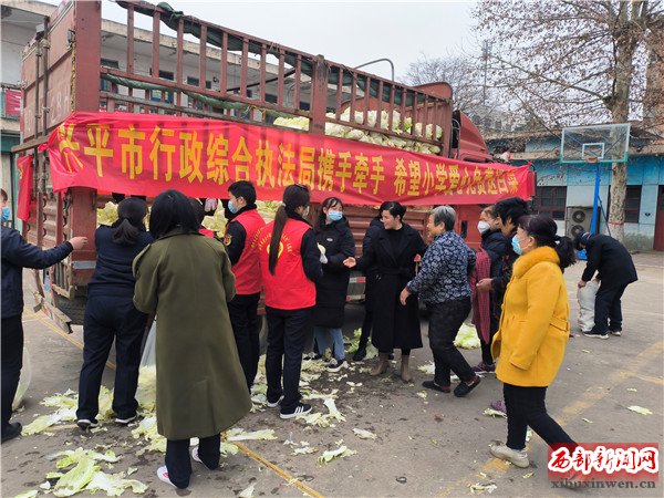 兴平市牵手希望小学携手与市综合执法局免费为市民发放十吨爱心大白菜