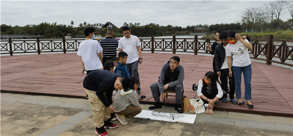 北国春寒料峭时,南国已是春来早。癸卯春节期间,著名文化学者、国家二级教授、著名画家李荣先生陪伴家人登上海南自由贸易港,考察疫情后的岛上文旅商情,体察当时风土人情,写生生活感悟,从临高点登陆入驻,先后考察了网红打卡地海花岛、金沙滩等楼盘的状况;到儋州东坡书院体验别样人生、海口全国帆船集训基地感受弄潮儿的拼博精神;万人火车头广场、潭门港口品尝海鲜美食;面朝大海,迎接海风吹拂,阳光杀菌;南海博物馆探寻“涨岛”神秘,温泉水中享受惬意人生……半个月时间,李荣先生身背画版册页,在家人的陪伴下,行程上千公里,以每天一幅作品速度,一口气完成了《椰子登场》《东坡书院》《临高角》《2023一帆风顺》《火焰花开》《养心亭》《半边风雨半边晴》等8幅作品,把自已在海南的感受,用画作淋漓尽致地表现了出来。