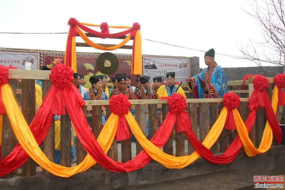 中国道教协会副秘书长、陕西省道教协会副会长、西安市道教协会会长刘世天道长恭读祭文,参加祭祖的全体人员向中华民族的伟大始祖伏羲大帝和女娲娘娘三稽首,感恩祖德,福佑中华。