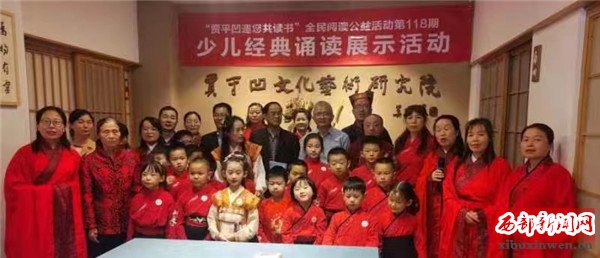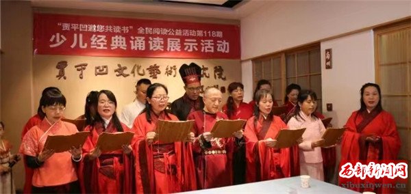 4月29日下午,在第28个世界读书日来临之际,由中国散文学会、陕西关工委、陕西省作家协会、贾平凹文化艺术研究院、陕西省少年儿童文化研究会联合主办,西安汉苑阁国学馆承办的“贾平凹邀您共读书”全民阅读公益活动第118期--少儿经典诵读展示活动在西安酱豆书屋成功举办。西部新闻网联合多家媒体重磅聚焦本次活动。