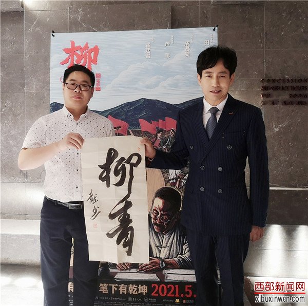 西部新闻网总编辑张龙为《柳青》男主角成泰燊赠送书法《柳青》