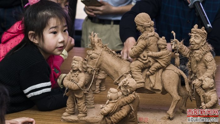一块普通的泥巴,在他粗糙的手中仿佛有了灵性,经过雕、塑、捏等技艺,捏出的人物一颦一笑都是那么活灵活现、气韵生动。最普通的泥巴在他的巧手下变成了展示陕北历史、风土人情的载体:咧嘴憨笑的山里娃、扭秧歌的老婆婆、闲话家长的陕北老汉、互相依偎的老两口——胡子、皱纹、旱烟袋、眼镜,马甲上的羊毛,头顶的帕帕,乃至衣服的皱褶无不勾画了了,人物表情生动,惟妙惟肖……这些古拙的、憨厚的“山里乡亲”呼喊着、欢笑着、扑面而来,让人不由自主地跟随他们进入山村、故土、童年,感受着陕北人的勤劳、朴实。来宾把王文瑜围得水泄不通,到场的小朋友也无不手舞足蹈,跃跃欲试。这种互动问答、即时交流式的文化讲座在古城西安还是第一次。