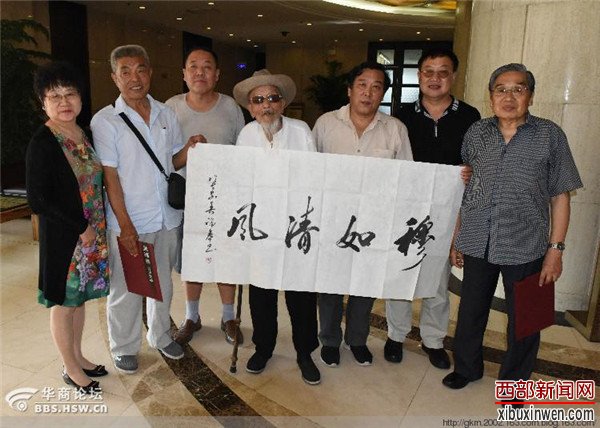 2016年7月5日,我在吴福春书法工作室偶遇中条山抗日英烈权子厚连长嫡孙权毓时。权毓时告诉我,他到来处查找他爷爷权子厚的历史资料。因年代长久跨度大,知情人又大都离开人世,难度大。经过了解,我调阅了我当年撰写的历史资料,他爷爷与王蒙芳在中条山抗战时是一个团的。从纪念抗日战争71周年角度出了,于是,我便独家策划了这次活动。权毓时盛情安排了见面会。 王蒙芳虽然已经97岁,但耳不聋眼不花,思维清晰,记忆力特别好。从当年世界上发生的大事,到中条山战场上的细节,都能够述说。王老先生有趣地告诉我们,他每天走下楼去,还拉拉单杠,以前还能够做引起向上运作。老先生烟瘾还大,能够连续抽烟。 赵寿山将军嫡孙赵武原、冯钦哉将军之孙冯寄宁长期研究陕军抗日历史。他们分别补充了部分史实,还将有关人员的联系方式告诉了权毓时。 吴福春副主席还向王蒙芳、赵武原、冯寄宁、权毓时分别赠送了书法作品。为我撰写作品《九十七岁抗日老兵王蒙芳》。