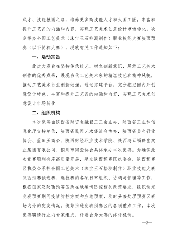 关于举办全国工艺美术(珠宝玉石检测制作)职业技能大赛陕西预赛的通知