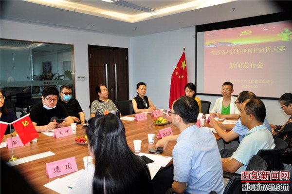 2020年6月30日由陕西省社区文化建设促进会主办的“陕西省社区抗疫精神宣讲大赛新闻发布会”在西安航天城举行。省社促会党支部书记朱勇、副会长郭志勇、秘书长金子及西部新闻网等20余家媒体出席。