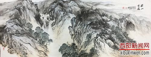 刘宜军的山水画作品,浑厚苍润,具有强烈的视觉张力。他笔下的山水,重山叠嶂山势峻险,飞瀑溪泉水流湍急,云雾若隐若现,渲染出一种空灵、深邃的艺术气氛,着意表现雄浑幽深的意境,无论是大幅或者小幅,都会给人一种大气磅礴、变幻莫测的美感。用笔温润沉着,结构细致严谨,既有传统山水画的神韵,又透出强烈的时代气息。观其画,既有北方人的豪爽,又有南方人的细腻,两者相辅相成,挥洒自如,融为一体,十分和谐。这种艺术境界,不但逾越了写境层次,而且进入了造境意识。在他的画作中处处都是自然与心灵交织、景中有情、情景交融的艺术空间。从这次所展出的几十幅作品中,不难看出他的基本功是相当扎实的。不论在构图上、用笔上,还是思想意境上,均颇见功力。