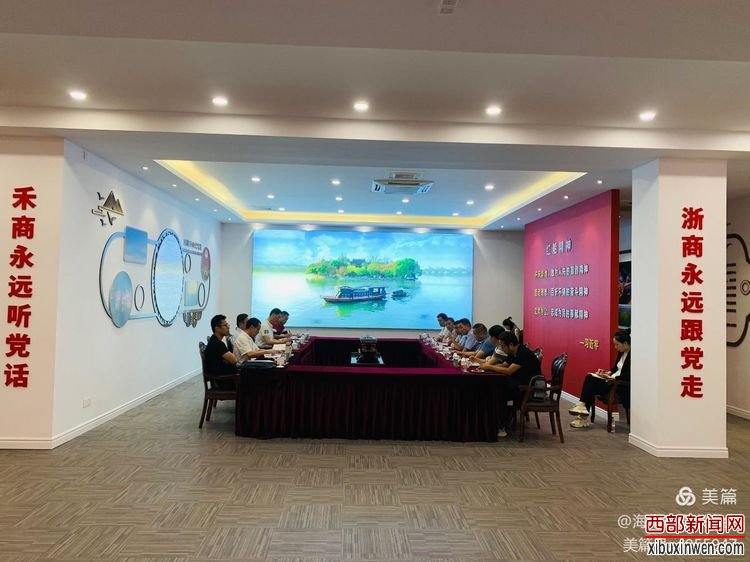7月13日上午,海南省委统战部副部长、省工商联党组书记、省“两新”组织工委副书记林胜带领省工商联机关党委专职副书记周鑫焱,省工商联商会协会处负责人、省非公综合党委副书记陈贤敏,省工商联党组秘书黄成,省工商联商会协会处一处韩彦华一行走访调研海南省嘉兴商会。海南省嘉兴商会会长林跃,执行会长、党支部书记李斌,副会长张兴龙、王傅杭,王伟国,以及党支部组织委员吴晓龙,法律顾问傅仪和及秘书处的成员共同参加。