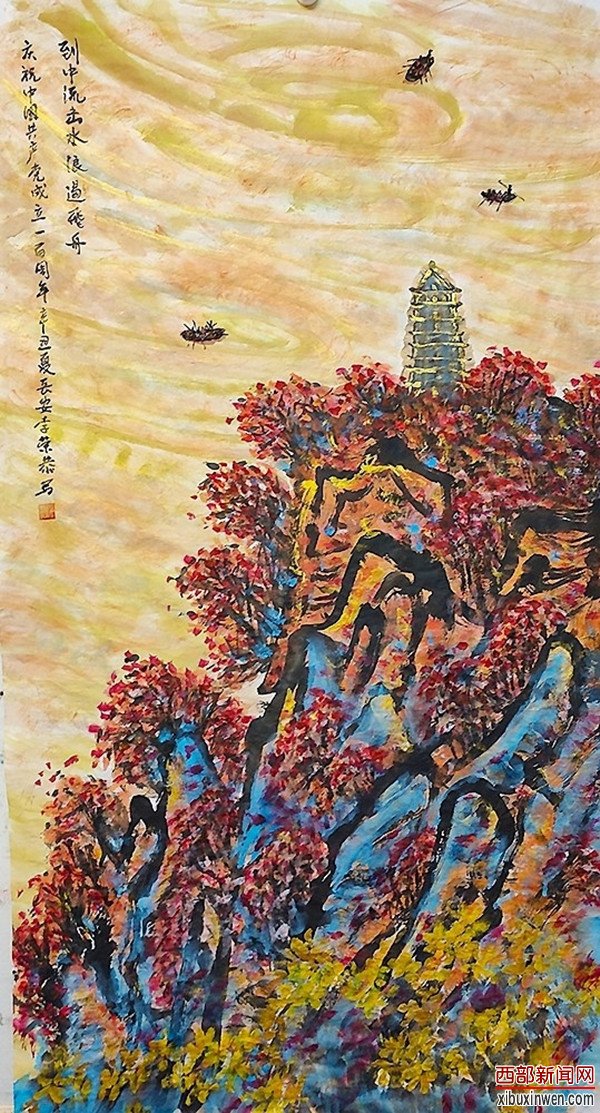 该作品是李荣教授为黄土画派庆祝建党一百周年秋季大型展览的特邀作品,是一幅八尺国画作品。记者连线李荣教授时他说:“自从七月初到青海果洛慰问抗震救灾的果洛公安归来后,深切感受到中国共产党领导的光荣正确伟大,党在各种危难之时,扭转乾坤,中流砥柱的大无畏精神,与是,想到了党中央在延安的十三年,领导全国人民克服艰难困苦,夺取抗战和解放战争全面胜利的"延安精神"。以此为创作灵感,就有了这幅作品的横空出世。”