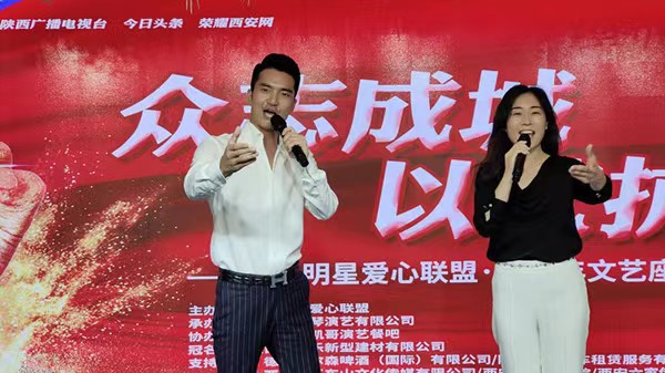 随后,座谈会上,青年歌手任肖、刘芳,原创音乐人华东兄弟主唱著名歌手“李邵华”,著名相声演员,西安二哥马腾翔,陕西乱弹创始人郑卫东、时尚流行原创音乐人杨青焕,陕西明星爱心联盟歌手娟子,西安中国书法院院长石心剑等陕西的文艺工作者,也给大家带来了丰富多彩的节目和优秀的书法作品,以此鼓励大家,在疫情常态化的当下,作为一名文艺工作者,始终保持初心,以艺抗疫,与人民群众同呼吸,同命运,一起共度难关。(张栢溪)