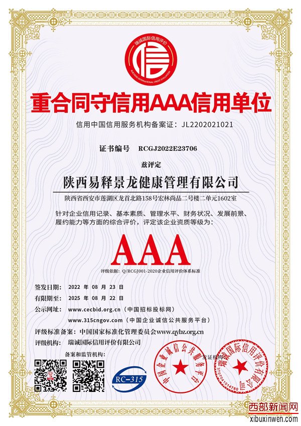 2022年6月,易释贤居易醫于景龙养生康复院被陕西省青年志愿者协会授予“2021年度志愿者公益爱心企业”称号,同年获得企业资信AAA等级证书、重服务守信用AAA企业、诚信供应商AAA级企业、质量服务诚信AAA单位、重合同守信用AAA信用单位、重质量守信用 AAA单位、诚信经营示范AAA单位、诚信企业家、诚信经理人。