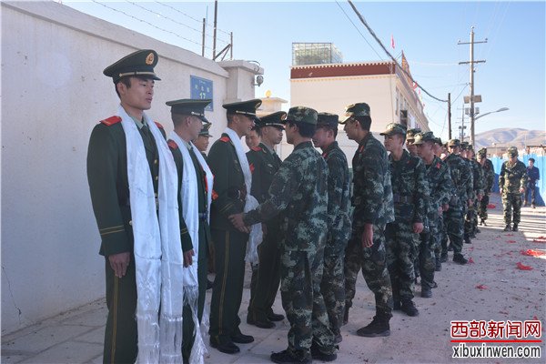 西部新闻网西藏讯(责任编辑:张柏溪 特邀记者:王斌)峥嵘离别愁。8月31日是一个让人潸然泪下的日子,更是一个让人难舍难分的日子,服役期满的老兵们将脱下戎装,离开培养他、教育他、锻炼他的第二个家,军旅生活将装进行囊,踏上返乡的路程。一大早,受行署副专员、革吉县委书记索朗次仁委托,革吉县委常委、组织部部长束志勇按照部队的作息时间,早早的来到了驻革武警中队,为即将踏上返乡路程的老兵们践行。