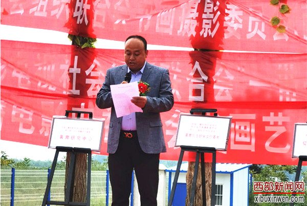 陕西广电书画研究院院长、中广联合会书画摄影委员会(西北)国际创作艺术交流中心主任、著名画家、黄胄文化研究者李荣讲话