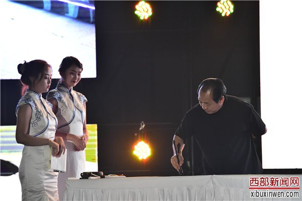 中秋前夕,一片明月之下的古城西安汉城湖畔秋意浓浓,祥和欢乐,备受关注的2020年“西北中秋晚会”在这里拉开帷幕,众多演艺明星登台献唱,向西北人民奉献了一台“月圆情浓”的团圆盛宴。当代著名实力派书法家石朝晖现场挥毫泼墨“天涯共此时”,把晚会推向高潮。