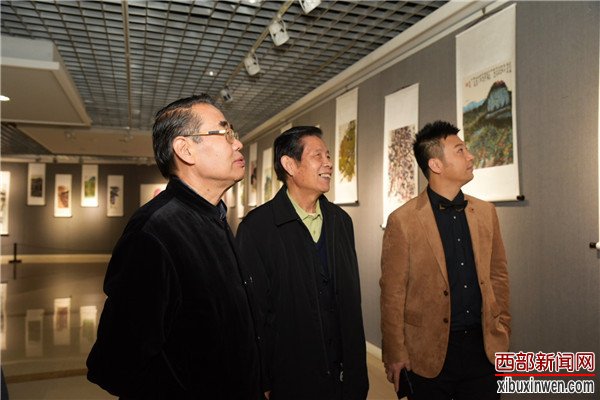 原陕西电视台副台长张书省,陕西卫视主持人、陕西广电书画院副院长李和平和李荣院长一起参观书画展
