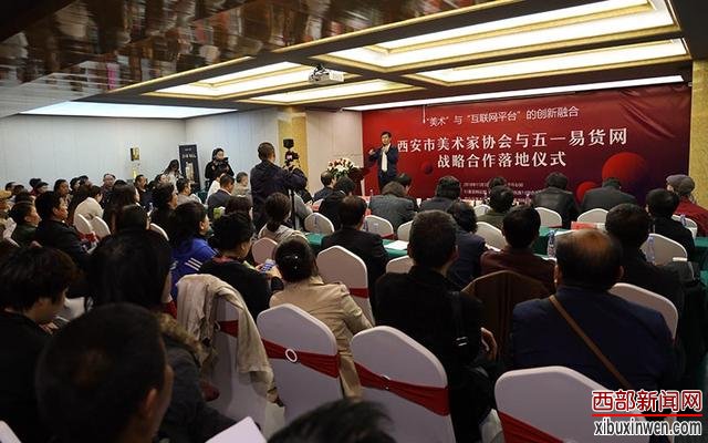 此次仪式就西安市美术家协会和51易货网共筑平台,西安市美协书画艺术作品将在五一易货网发布及授信消费等相关事宜达成战略合作协议。本次签约书画作家100名,自愿报名提供作品,五一易货网为艺术家们预借提货权2000万元。